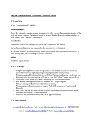 Pmi Acp Agile Classroom Training Program Izenbridge Consultancy P